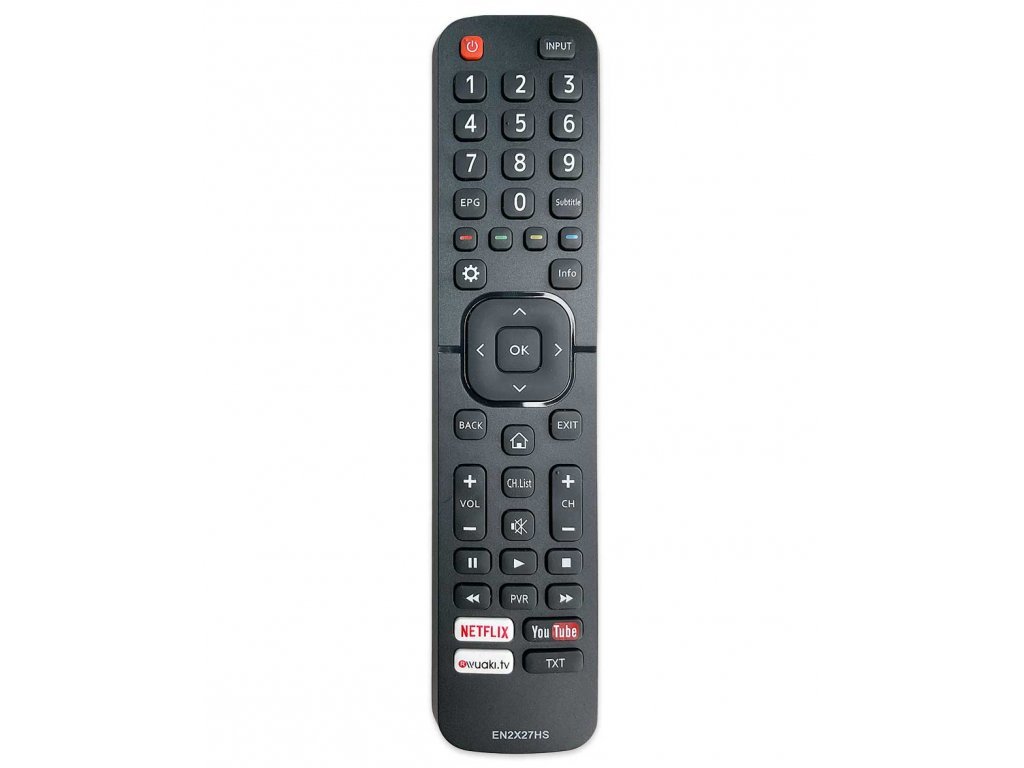 Náhradní dálkový ovladač HISENSE EN2G30H je plně kompatibilní se smart televizory Hisense. Nabízí stejné funkce jako originální dálkový ovladač – snadné ovládání kanálů, hlasitosti, menu a přímý přístup k aplikacím Netflix, YouTube, Prime Video a Rakuten TV.